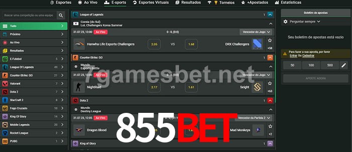 O 855bet oferece uma grande seleção de opções de apostas em e-sports com probabilidades competitivas